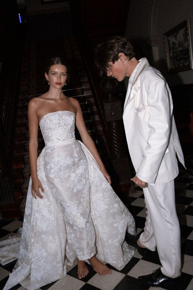 Versatile bridal outfits are trending, with dresses featuring detachable sleeves, skirts, and capes, allowing brides to transform their look from ceremony to reception seamlessly.