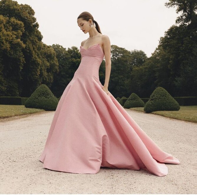 Expect gowns that play with exaggerated shapes—think voluminous sleeves, structured bodices, and flared skirts, creating bold, architectural statements.