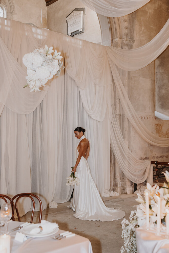 This collaboration was born from a styled brief that celebrated modern bridal femininity minimalist in form, yet rich in texture and craftsmanship. The aesthetic perfectly suited our approach to bespoke bridal design: creating gowns that are effortlessly elegant and beautifully made, yet quietly impactful.