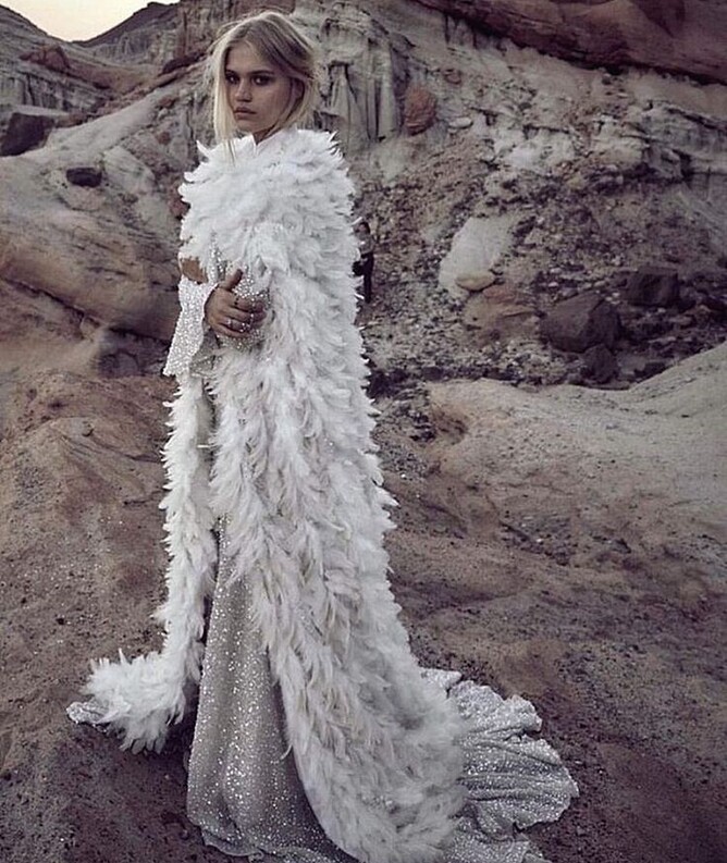 the gown into a winter style that is really striking.