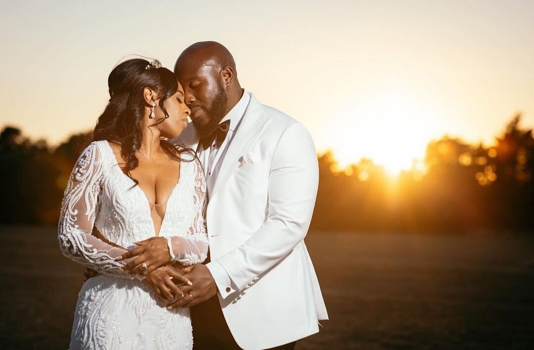 Jade went with a ivory embroidery which we sourced for her. Jade opted for a more structured silhouette which we went with a silk Mikado fabric for the base of her wedding dress. Jade's wedding dress had a layer of tulle which we mounted the embroidery unto. Which was individually cut and hand attached to her wedding dress.