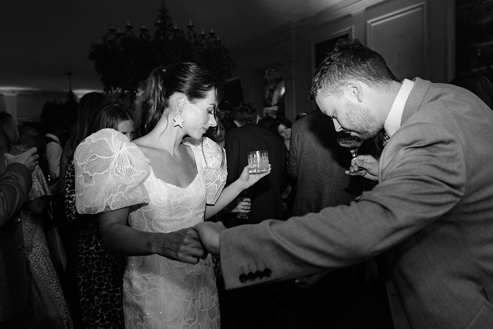 So we sketched some ideas and came up with this dress!! Fun and elegant we selected an embroidered ivory tulle which had a bit of sparkle which was perfect for her nightclub theme wedding reception in the Orangery at Euridge Manor in Wiltshire.